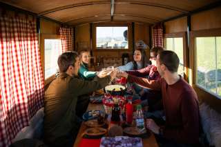Mettetevi comodi con la famiglia o gli amici nella carrozza per fonduta Rössliposcht Maienfeld, appositamente attrezzata, e lasciate che la carrozza a due cavalli vi porti attraverso la Bündner Herrschaft . Mentre fuori fa freddo, potrete gustare una cremosa fonduta di formaggio Bad Ragaz nella carrozza riscaldata e illuminata. Con la musica d'atmosfera e un buon bicchiere di "Maienfelder", il viaggio diventa un'esperienza indimenticabile nella regione vinicola.