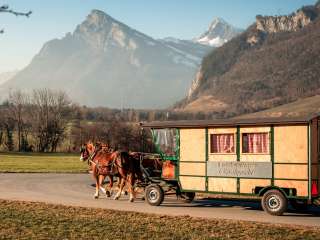 Gustate una deliziosa fonduta di formaggio di Bad Ragaz con la famiglia o gli amici in una carrozza trainata da cavalli. La carrozza trainata da cavalli vi porterà attraverso la regione vinicola della Bündner Herrschaft.
