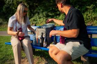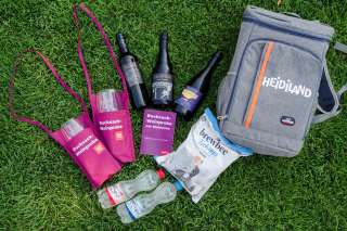 Tre vini selezionati di viticoltori locali in uno zaino refrigerato
