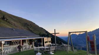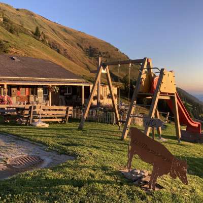 Dopo il breve viaggio in treno e una comoda escursione di mezz'ora, potrete gustare una fetta di formaggio d'alpeggio o un delizioso "z'Vieriplättli" con le specialità regionali prodotte sull'alpe. Per i più piccoli c'è un parco giochi per bambini proprio accanto al garden pub.