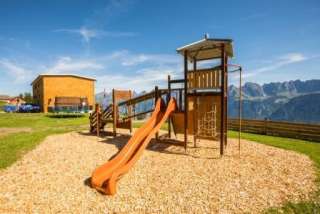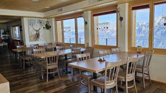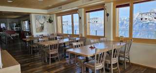 Il nuovo e accogliente ristorante con cucina casalinga e vista panoramica può ospitare fino a 80 persone. Si può godere della vista dall'accogliente terrazza solarium. Per i più piccoli sono disponibili un parco giochi all'aperto e una sala giochi.