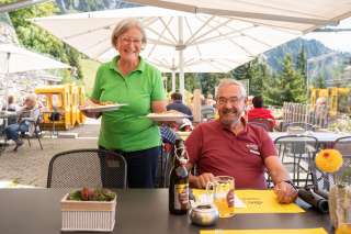 La vista oltre il bordo del piatto promette un panorama montano spettacolare. Vedrete - e rimarrete seduti. Nell'accogliente ristorante di montagna a 1.801 metri sul livello del mare.