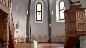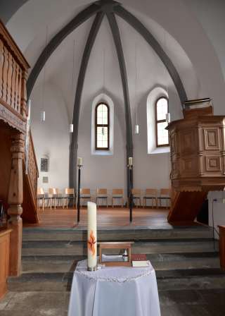 La chiesa è addossata alla collina del castello e offre riparo a se stessa e ai suoi visitatori. Questa impressione è enfatizzata dalle facciate quasi completamente chiuse rivolte a nord e a ovest. Il coro sacro e gotico è in dialogo con la navata centrale, dominata da arredi in legno. La galleria sui lati nord e ovest è stata costruita per mancanza di possibilità di espansione.