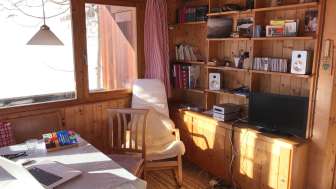 L'accogliente e luminosa casa vacanze con due camere da letto, soggiorno e cucina si trova vicino a Sergeuris a Valens, nei pressi di una fattoria. La casa offre tutte le strutture e le attrezzature necessarie per una vacanza breve o più lunga. Un ampio balcone invita a soffermarsi, così come una piazza in pietra di fronte alla casa, con camino e barbecue. La casa è riscaldata con una stufa in pietra ollare (riscaldamento a legna). Con temperature sotto lo zero, la stufa deve essere accesa per circa 3 ore al mattino e alla sera.