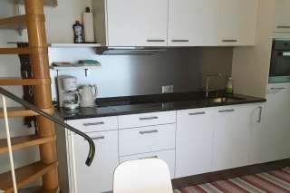 La casa vacanze è moderna e arredata in modo accogliente. La zona giorno/pranzo ha un pavimento in piastrelle, mentre le camere da letto hanno il parquet. Al piano terra c'è una scala a chiocciola che porta al piano superiore (non adatta ai bambini piccoli).