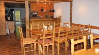 La casa vacanze è accogliente e confortevole, arredata con molto legno. Le pareti del soggiorno e della camera da letto sono rivestite di pannelli.