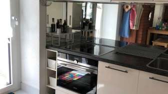 La cucina completamente attrezzata è dotata di piano cottura in vetroceramica, forno, grande frigorifero, lavastoviglie, macchina per il caffè, bollitore, tostapane, set per fonduta e raclette.