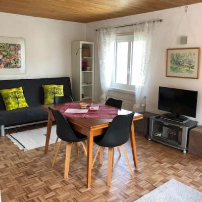Vi attende un accogliente appartamento duplex di 3 1/2 locali, situato in posizione ideale vicino alla stazione ferroviaria. L'autobus, che vi porta comodamente al centro del paese per i negozi e le terme, è a pochi minuti di distanza.