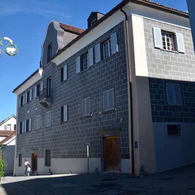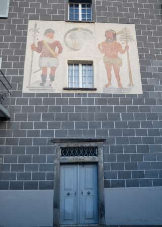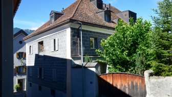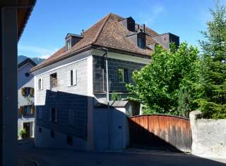 La pittura a finto bugnato sulla facciata, la prima fila di finestre alte sul vicolo e il tetto a capanna sopra il corpo massiccio dimostrano che si tratta di una casa padronale. Sopra il grazioso balcone si trova un timpano armonioso, che ricorda la cultura costruttiva locale. Tuttavia, il Wildmannli sulla facciata occidentale ci insegna che nello Zehngerichtebund la gente era di casa.