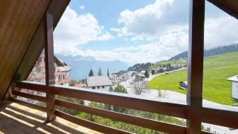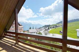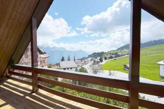I due appartamenti della casa DOMO vantano ambienti luminosi, eleganti mobili d'epoca e un caldo ambiente in legno. Godetevi la vista panoramica unica sulle montagne circostanti, sia dall'accogliente soggiorno che dalla terrazza o dal balcone soleggiato.