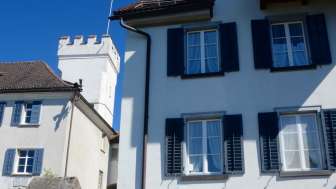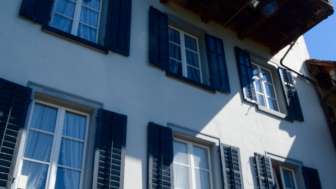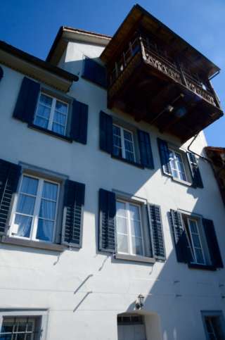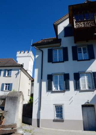 La Schlegel House di Jenins si trova al centro dell'asse stradale. Il tetto a capanna e il giardino anteriore sottolineano l'armonia dell'edificio. Insieme alla Sprecherhaus superiore, delimita una piazza triangolare.