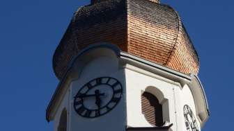 Lo sguardo viene magicamente attratto dalla cupola a doppio cipollotto ricoperta di scandole, passando per la cima della torre ottagonale e scendendo verso la navata non meno armoniosa. L'ampia navata ad aula e il coro poligonale conferiscono alla chiesa dimensioni impressionanti. Alcune delle statue presenti all'interno provengono dall'antico altare maggiore, risalente al 1550 circa.