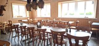Ampia terrazza esposta a sud (120 posti a sedere in estate / fino a 300 posti a sedere in inverno) con una meravigliosa vista panoramica e tanto sole da mattina a sera. Accogliente ristorante per circa 70 persone.
