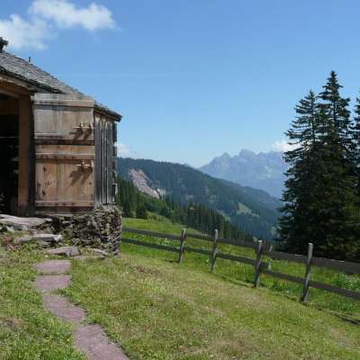 Nella natura incontaminata della valle di Schilstal, lontano dallo stress della vita quotidiana, si trova il rifugio Mulchenhütte Lauiboden. Qui il tempo sembra essersi fermato. Prati alpini rigogliosi, ruscelli di montagna, abeti scuri e montagne imponenti caratterizzano l'immagine. Sembra che Heidi e gli Alpöhi stiano per uscire dalla malga.