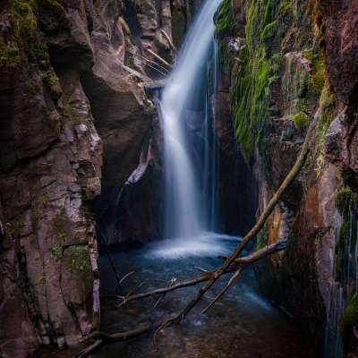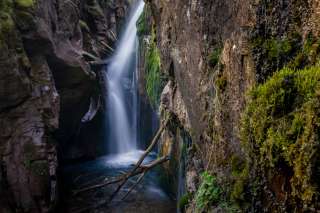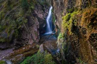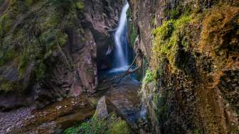 La cascata del Murgbach colpisce per la sua pietra rossa di Verrucano e per il verde che la circonda. Si trova nel più grande bosco di castagni a nord delle Alpi ed è raggiungibile in 30 minuti attraverso il sentiero delle castagne.
