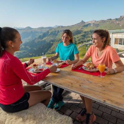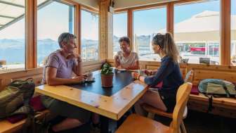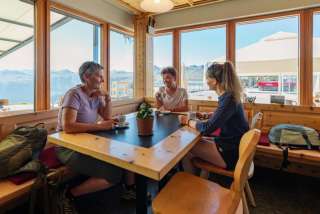 Godetevi la vista panoramica sulle montagne circostanti dalla struttura di ristorazione più alta del Flumserberg. Da un lato, lasciate che il vostro sguardo vaghi rilassato sulla distesa dell'area dello Spitzmeilen con il suo caratteristico punto di riferimento, lo Spitzmeilen, alto 2501 metri, o dall'altro, lasciatevi incantare dalle magiche catene del Churfirsten e dell'Alvier con le loro cime frastagliate sopra il Lago di Walen. Il luminoso edificio rotondo dispone di 80 posti a sedere. Nella spaziosa sala, 240 ospiti possono godere della vista sul Churfirsten e l'accogliente Stübli offre 48 posti a sedere con la migliore vista sull'area dello Spitzmeilen. Sulla grande terrazza soleggiata, 600 ospiti possono ammirare contemporaneamente il panorama mozzafiato (200 posti a sedere). Sono disponibili anche sedie a sdraio.