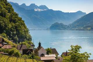Quinten si trova su un promontorio del lago di Walen, circondato dalle montagne Churfirsten. Il villaggio, privo di auto, è raggiungibile solo a piedi o in barca e offre un clima mite in cui prosperano anche fichi e kiwi.