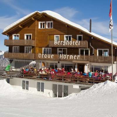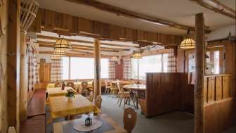 Il ristorante Graue Hörner si trova proprio accanto alla stazione a monte della cabinovia Wangs - Pizol. Offre una splendida terrazza solarium e un'area interna con un variegato menu di prodotti regionali.