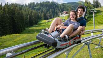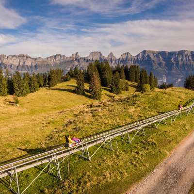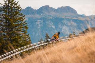 Sfrecciate sulla pista da slittino sicura per 2 km e 250 metri di profondità attraverso tunnel, ponti, curve, onde e rotatorie nel paesaggio mozzafiato da Chrüz a Tannenboden. Grazie all'interessante offerta Early Bird, potrete usufruire di un numero illimitato di corse in slitta dalle 10.00 alle 12.00 tutti i giorni. Grazie ai veicoli per slittini resistenti alle intemperie, il divertimento FLOOMZER può avvenire con qualsiasi tempo. La pista da slittino FLOOMZER è una meta escursionistica molto apprezzata da famiglie, gruppi, club e aziende.