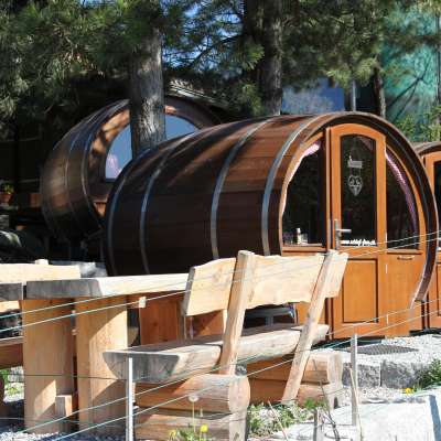 Le botti sono arredate con grande attenzione ai dettagli. Nelle botti per dormire ci sono accoglienti piumoni per un sonno meraviglioso. In pochi semplici passi, è possibile trasformare il barile per la ricreazione in un BARILE PER DORMIRE. In questo modo possono pernottare fino a quattro persone.