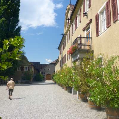 Il complesso del castello, quasi simmetrico, è stato costruito tra il 1782 e il 1784 combinando varie fasi di costruzione (Ulisse Gugelberg). Ancora oggi è di proprietà della famiglia Gugelberg von Moos. Il giardino ornamentale e il vigneto circondano il castello e il cortile. La casa del giardiniere e l'imponente edificio a nord-ovest. Il salice ispirò Rainer Maria Rilke a scrivere la poesia "Il salice di Salenegg" nell'agosto del 1926.