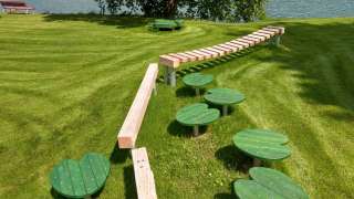 Giochi d'acqua e giochi a terra si incontrano sulla riva naturale del lago di Molser. Oltre a un grande prato verde per prendere il sole sulla spiaggia, troverete un'ariosa oasi di gioco con scivolo per aironi, altalena per gabbiani, altalena per rane, percorso di equilibrio per ninfee e una piccola area con giochi d'acqua dove potrete sguazzare e sguazzare a vostro piacimento. Potrete sfogarvi nella riva e nei giochi d'acqua o (al di fuori della stagione principale) trasformare la morbida area verde in un parco giochi. Troverete l'ombra sotto grandi alberi e onde, sassi e legni alla deriva un po' più avanti sulla spiaggia. E mentre il vento gioca con le foglie e le onde, ogni tanto passa un'anatra.