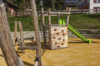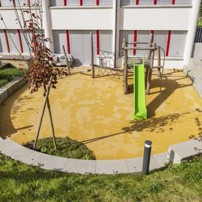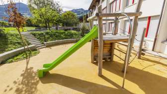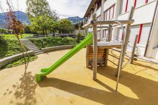 Il parco giochi della scuola Camilu Berschis offre uno scivolo ed elementi di arrampicata per i bambini più piccoli in uno spazio ridotto. Un luogo ideale per una breve e divertente pausa all'aperto.