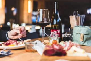 Entrate nell'ex stalla delle mucche. Dove un tempo le mucche godevano di calore e accoglienza, oggi i nostri ospiti trovano i migliori vini dei Grigioni in combinazione con le specialità culinarie regionali.