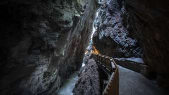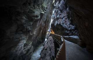 La Gola della Tamina, vicino a Bad Ragaz, offre un percorso sicuro di 450 metri per raggiungere la grotta dell'acqua sorgiva. Qui, 8.000 litri di acqua termale al minuto sgorgano dalla sorgente acratotermica più produttiva d'Europa, a una temperatura costante di 36,5 °C.