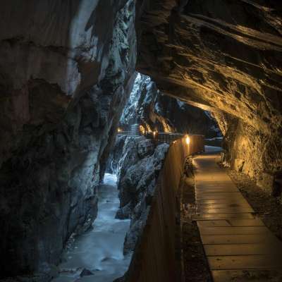 A pochi metri dall'antico bagno di Pfäfers si trova l'ingresso alla mistica gola delle sorgenti termali. Il sentiero sicuro, lungo 450 metri, conduce nell'ultimo tratto attraverso una galleria all'interno della roccia, passando davanti alla piccola fontana termale fino alla grotta delle sorgenti. Le pareti rocciose della gola raggiungono un'altezza di 80 metri. Nella grotta dell'acqua sorgiva è possibile vedere da vicino come circa 8000 litri di acqua al minuto sgorgano dalla roccia dalla sorgente acratotermale più abbondante d'Europa. I ricercatori ipotizzano che l'acqua si infiltri nella zona del Tödi o del Sardonage. Qui viene riscaldata fino a quando, dopo oltre 10 anni, ritorna in superficie nella gola della Tamina con una temperatura costante di 36,5 °C.