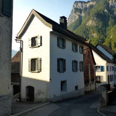 Separata da un viottolo, la stretta casa si affianca alla vicina più grande, che fungeva da lavatoio e casetta degli inquilini. Oggi è più sicura, poiché offre spazio abitativo su due piani. I lavatoi si trovavano nel seminterrato. L'accesso in legno sul retro è stato aggiunto nel 1925, quando è stato costruito il primo piano.