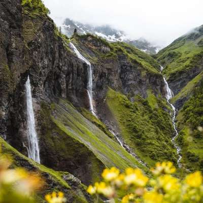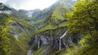 L'arena delle cascate del Batöni a Weisstannen offre uno scenario impressionante con le cascate di Piltschinabach, alte 81 metri, le cascate di Sässbach, alte 86 metri, e le cascate di Muttenbach, alte 45 metri. Un luogo unico di potenza naturale.